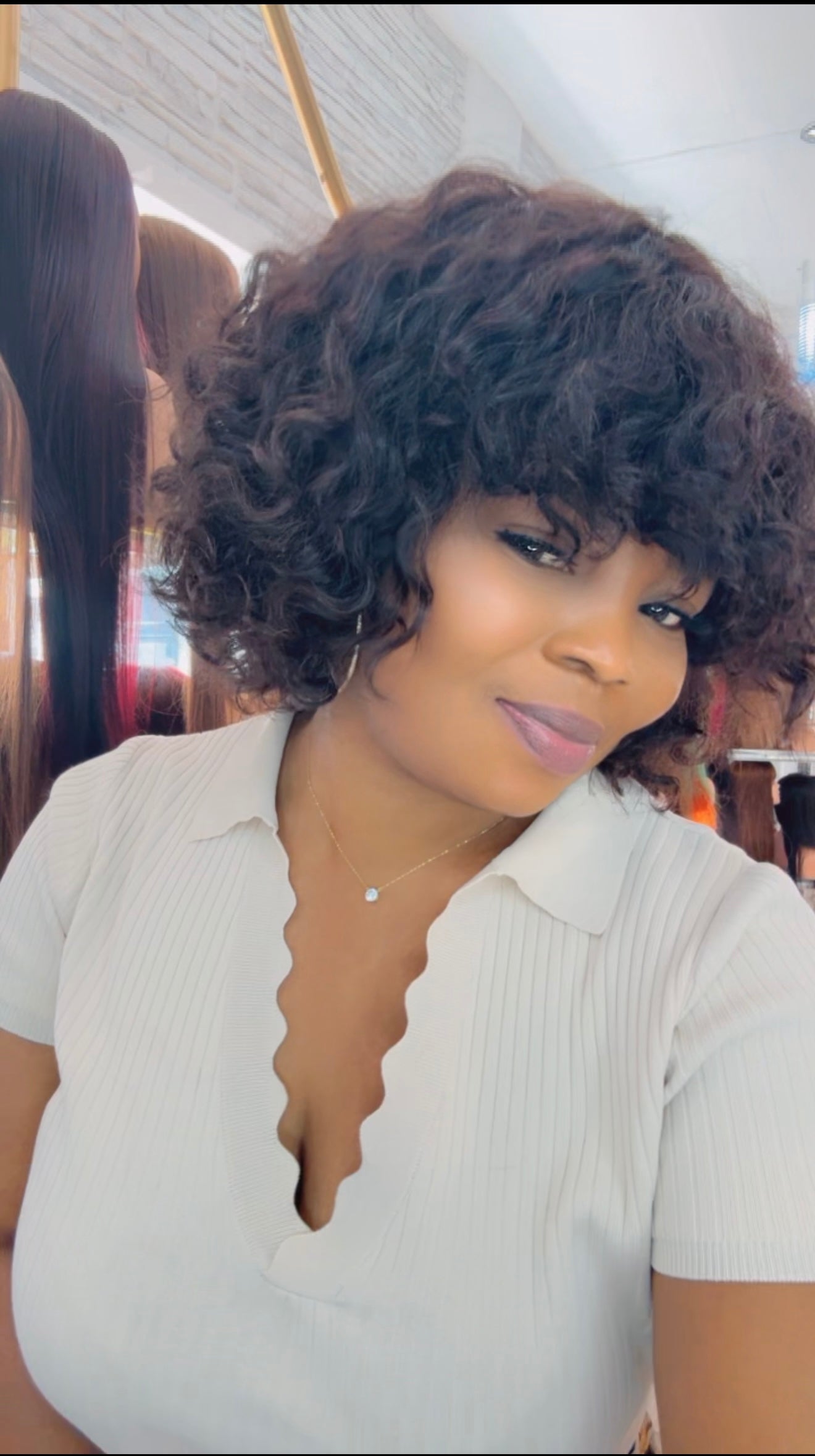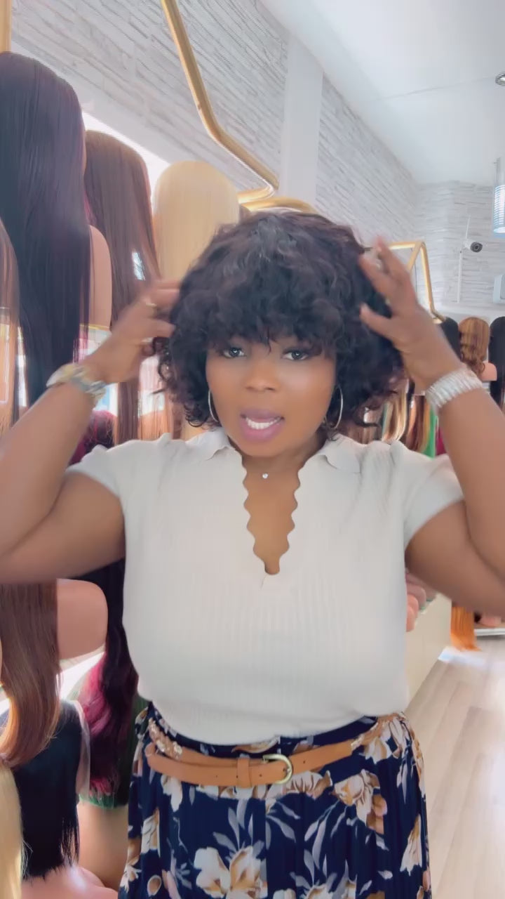 Très belle coup carré frange water wave sans colle . Très jolie portée.