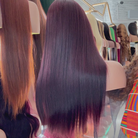 Cette perruque est en qualité vietnamienne est disponible en lisse . Le modèle porte une perruque : Lace frontale closure 2x6 TR, longueur: 18 pouces.
